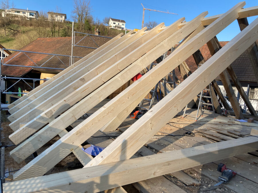 »Perfekte Planung, Koordination, sowie termingerechte Ausführung der verschiedenen Arbeitsschritte: Gerüstaufbau, Dachkonstruktion, Isolation, neues Unterdach, Dichtungen/Folien, Trägerkonstruktion für die Solarpaneele. Die Ortsladen und Abschlüsse sind rundum einwandfrei erstellt. Gute Zusammenarbeit mit der Spenglerei und dem Maler. Alles aus einer Hand von TimberTime und das Dachprojekt erscheint wie „aus einem Guss“. Einwandfreie und ausgezeichnete Arbeit bis ins Detail, termingerecht, speditiv und unkompliziert, produktive Stimmung auf der Baustelle, zuvorkommende Zusammenarbeit mit der Bauherrschaft, kompromissbereit, transparente Verrechnung der Arbeiten.«